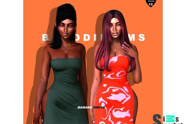 Главная » Одежда » В полный рост Платье banana by badddiesims для Симс 4. Скачать мод В полный рост Мод для Sims 4 — платье для девушек / несколько цветов. СКАЧАТЬ (.package)