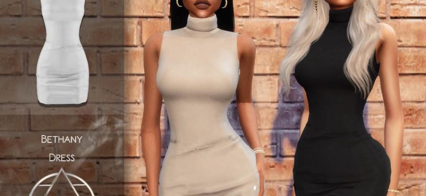 Главная » Одежда » В полный рост Платье Bethany by Camuflaje для Симс 4. Скачать мод В полный рост Мод для Sims 4 — платье с длинными воротником для девушек. СКАЧАТЬ (.package)