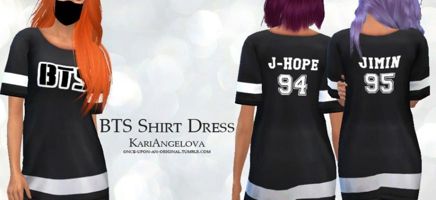 Главная » Одежда » В полный рост Платье BTS by KariAngelova для Симс 4. Скачать мод В полный рост Мод для Sims 4 — короткое платье с надписями BTS. СКАЧАТЬ (.package)