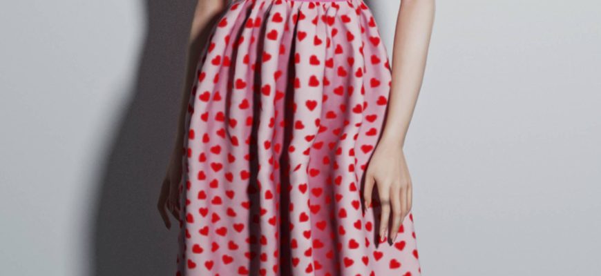 Милое романтичное платье миди с принтом в виде красных сердечек. 1 цветовое решение.