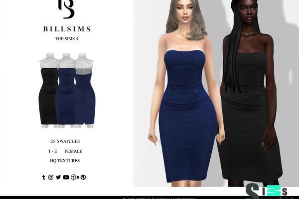 Главная » Одежда » Женская одежда Платье миди-бандо со вставками для Симс 4. Скачать мод Женская одежда доступно для подростков, женщинв 25 цветовых образах СКАЧАТЬ (.package)