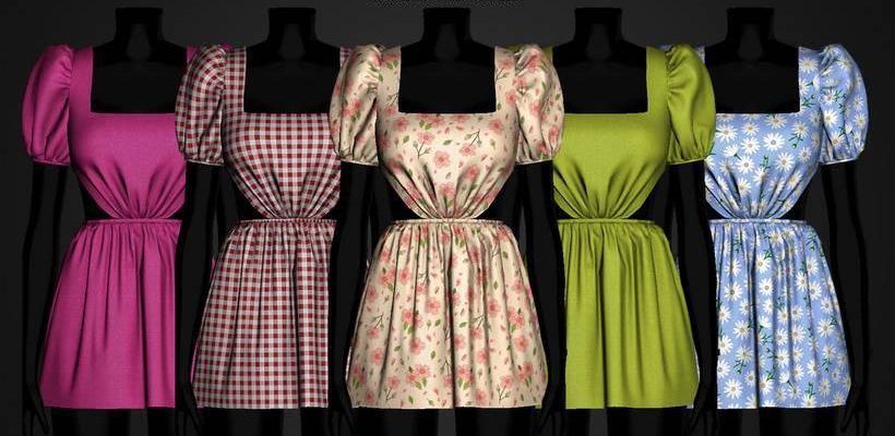 Летнее платье с короткими объёмными рукавами и вырезами по бокам талии в 40 цветовых решениях.