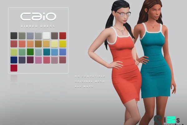 Главная » Одежда » В полный рост Платье ribbed by caio-cc для Симс 4. Скачать мод В полный рост Мод для Sims 4 — платье для девушек / несколько цветов. СКАЧАТЬ (.package)