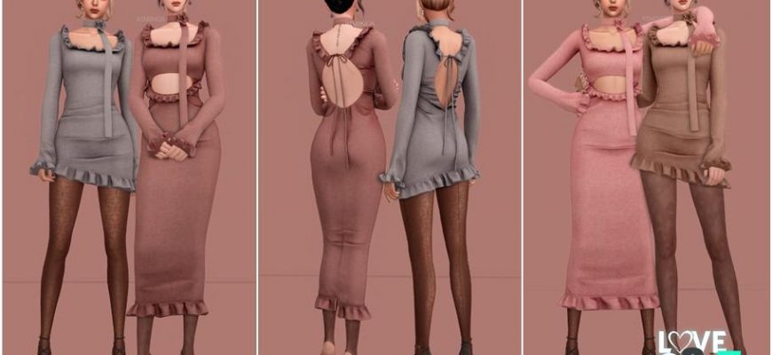 Комплект из двух трикотажных платьев разной длины и вязаного шарфа, представленных в 16 различных цветах. Оригинальное название rose stella от rimings.