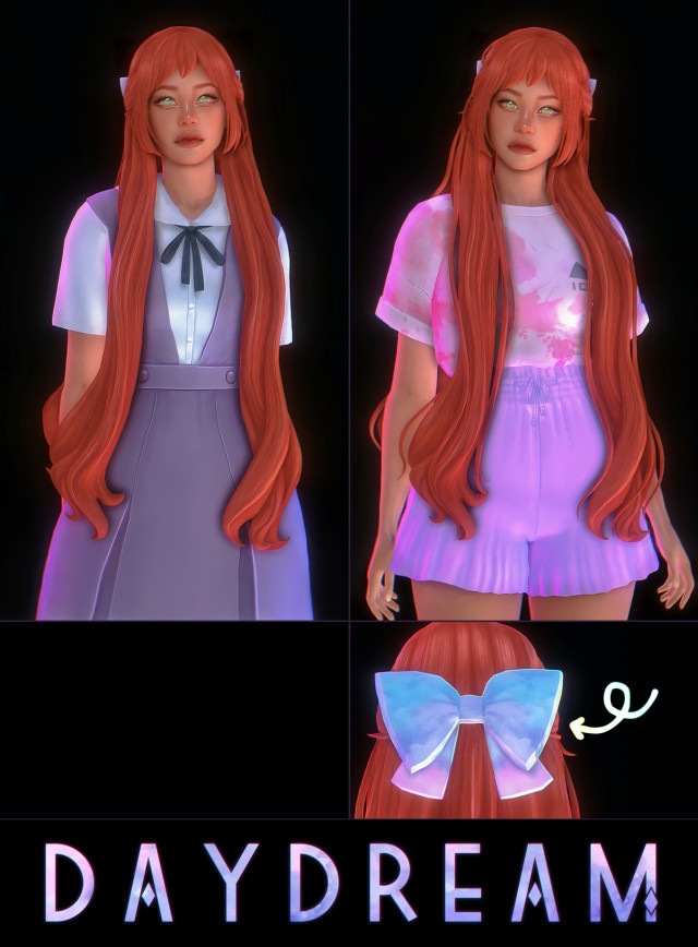 Главная » Лицо и прически » Прически » Женские прически Прическа и бант | Daydream Hair by Simandy для Симс 4. Скачать мод v1: Без дополнительных прядей волос. V2: Дополнительные пряди волос.24 EA ColorsБант найдете в шляпах СКАЧАТЬ (.package)