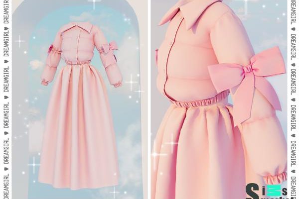 Главная » Одежда » В полный рост пуховик с бантиками и длинной юбкой для Симс 4. Скачать мод В полный рост Милое пальто в стиле альфа СКАЧАТЬ (.package)