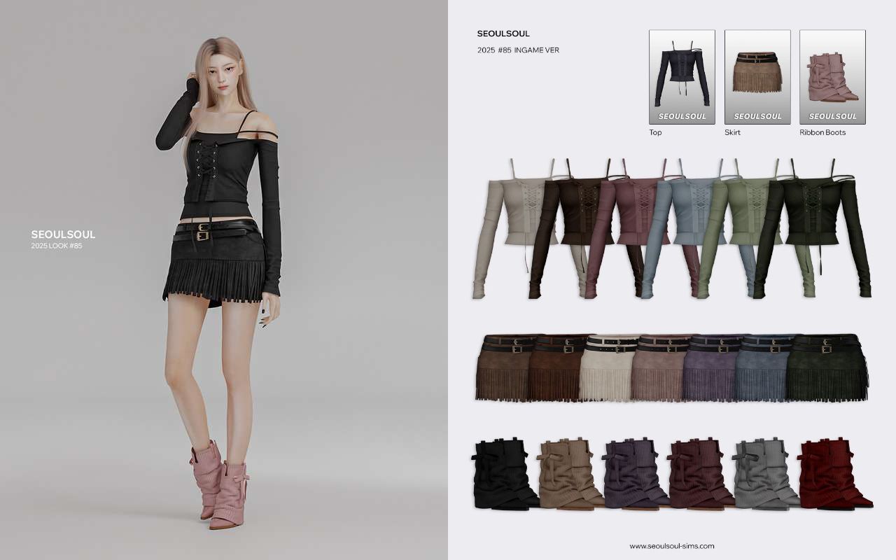 Главная » Одежда » В полный рост SeoulSoul — 2025 #85 для Симс 4. Скачать мод Включает в себя: Многослойный верх Юбка с кисточками Сапоги с лентами СКАЧАТЬ (.package)