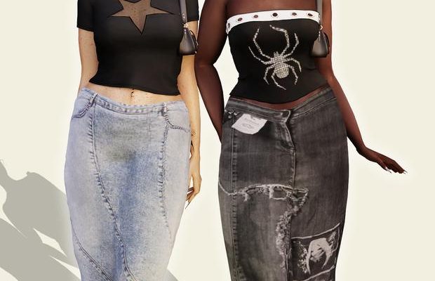 В набор входят два вида топов в 11 и 8 цветовых свотчах, две юбки в 4 цветовых свотчах, серьги в 5 цветовых свотчах и сумочка в 7 цветовых свотчах.