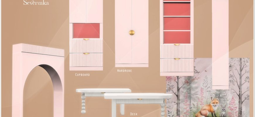 Комплект мебели и декора для оформления детской комнаты.