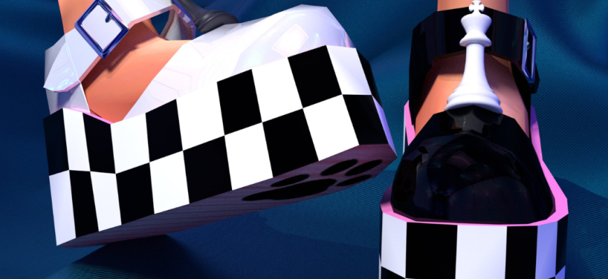 Обращение от создателя: Checkmates — это милые туфли Мэри Джейн с изображением шахматного короля на верхней части каждой туфли, одна белая, другая чёрная, с цветной окантовкой, клетчатой подошвой и моим фирменным отпечатком руки на подошве