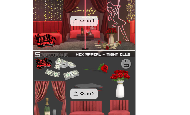 Добавьте страсти в вечера ваших симов с бархатными кабинками и светящимися неоновыми вывесками. Этот комплект излучает смелую, провокационную атмосферу, идеально подходящую для баров, стрип-клубов и жарких фотосессий.