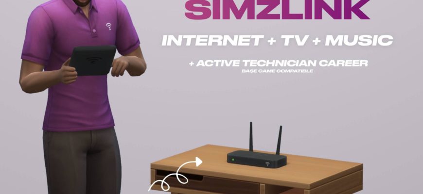 Simzlink — мод, который даёт интернет вашим симам, а также персонаж имеет возможность работать в Simzlink компании! Если не установить интернет Simzlink, то тогда компьютеры, ТВ, музыка и всякая другая техника относящаяся к интернету — не будут работать, чтоб избежать этой ситуации, то вы должны вызвать по телефону специалиста Simzlink и он установит вам интернет абсолютно бесплатно! А для того чтоб он выполнил свою работу, то вы должны купить роутер, который находится в строительном режиме, категория — кухня. Надеюсь вам понравится мод от автора Lot51.CC! Приятной игры, симеры!