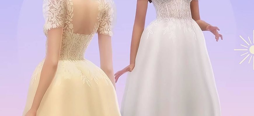 Нежное и воздушное свадебное платье с короткими объемными рукавами и полупрозрачной цветочной вышивкой в 2 версиях (длинное и короткое) и в 15 цветовых вариантах