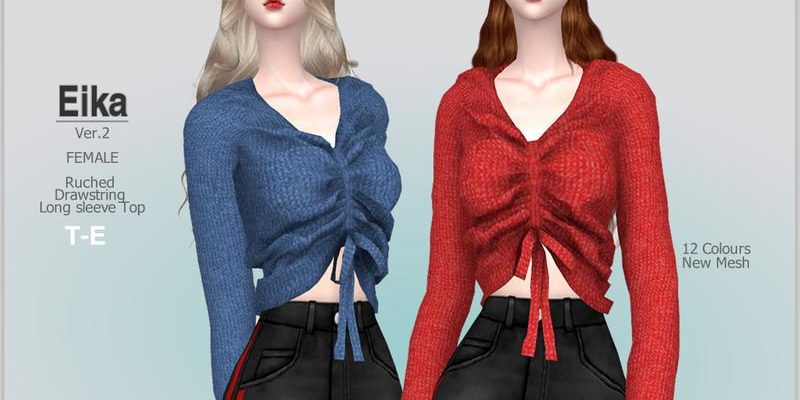 Главная » Одежда » Верхняя часть Свитер EIKA v2 от helsoseira для Симс 4. Скачать мод Верхняя часть Мод для Sims 4 — новая версия подвязанного свитера с V-образным воротником для девушек в 12 цветах СКАЧАТЬ (.package)