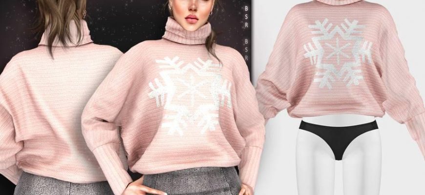 Свободный вязанный свитер с высоким объемным воротом и вышивкой на груди в форме снежинки + простая вязанная мини-юбка в 10 цветах. См. в разных разделах.