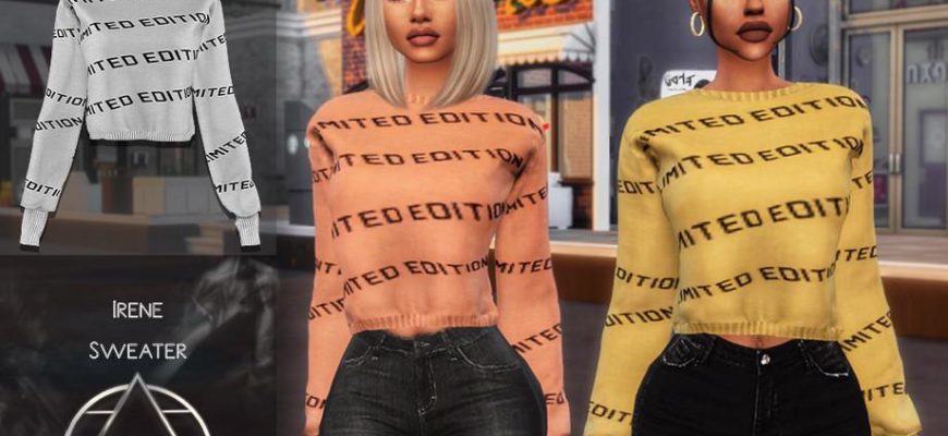 Главная » Одежда » Верхняя часть Свитер Irene by Camuflaje для Симс 4. Скачать мод Верхняя часть Мод для Sims 4 — свитер для девушек различных цветов. СКАЧАТЬ (.package)