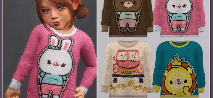 Главная » Одежда » Верхняя часть Свитер RPL91 by RobertaPLobo для Симс 4. Скачать мод Верхняя часть Мод для Sims 4 — свитер для тоддлеров с различными рисунками. СКАЧАТЬ (.package)