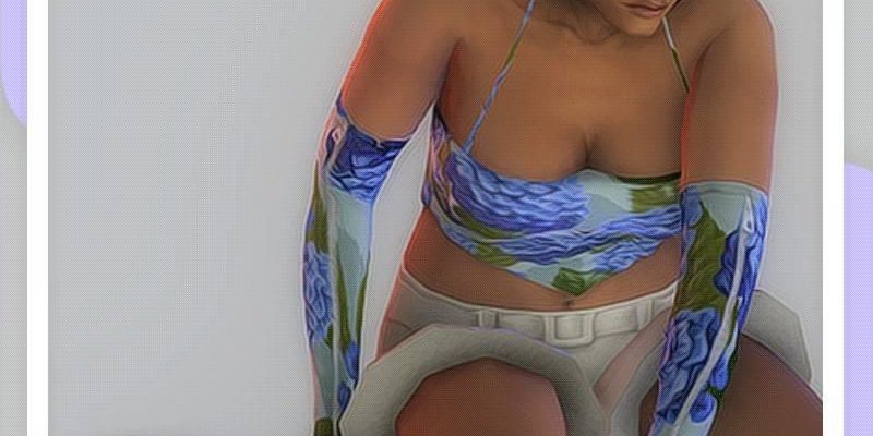 Треугольный топ на тонких лямках, длинные перчатки и носочки в 15 цветовых образцах.