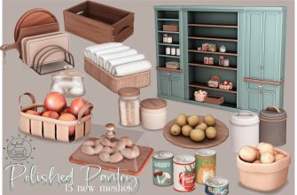 Мод для Sims 4 — современная деревянная ванная. Этот набор содержит ванну, душ, туалет, раковину, зеркало, сиденье, радиатор и мешалку.