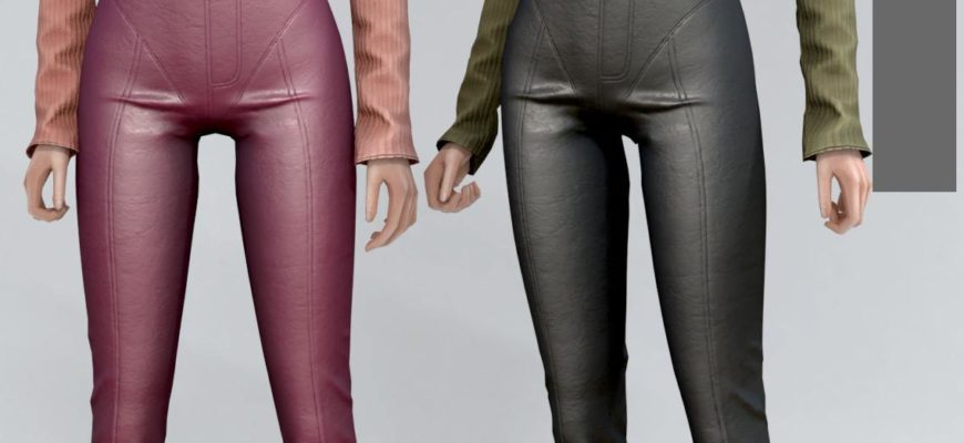 Тёплая водолазка-корсет с декоративным вырезом на груди (25 ц.в.) + кожаные брюки-клёш с высокой посадкой (29 ц.в.).