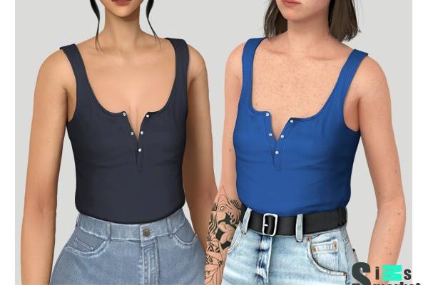 Главная » Одежда » Женская одежда Женская майка «half button tank top» для Симс 4. Скачать мод Женская одежда Заправленная майка с пуговками на груди в 56 цветовых решениях. СКАЧАТЬ (.package)
