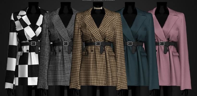 Стильный пиджак оверсайз с тонким ремешком на талии в 25 цветовых решениях (см. раздел "Верхняя часть одежды") и чокер с цепью в 14 свотчах.